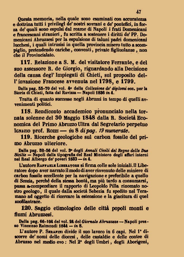 119. Ricerche geologiche sul carbon fossile del primo Abruzzo ulteriore.