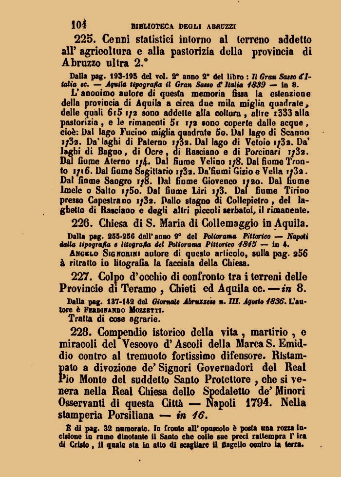Dalla pag. 137-142 del Giornale Abruzzese n. Hi. Agosto 4836. L'autore è Ferdinando Mozzetti.