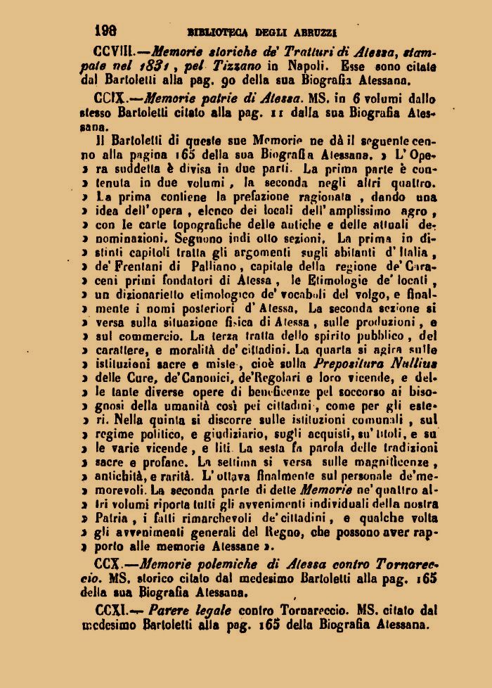 CCIX•—Memorie patrie di Atessa. MS. in 6 volumi dallo slesso Barlolelli cilalo alla pag. 11 dalla sua Biografia Ales-Bana.