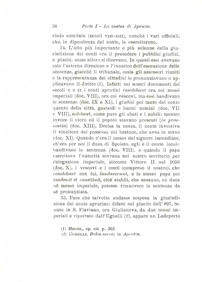 35. Pare che talvolta andasse sospesa la giurisdizione del conte aprutino; difatti nel placito dell' 897, tenuto in S. Flaviano, ora Giulianova, da due messi imperiali e riportato dall'Ughelli (2), appare un Ladeperto