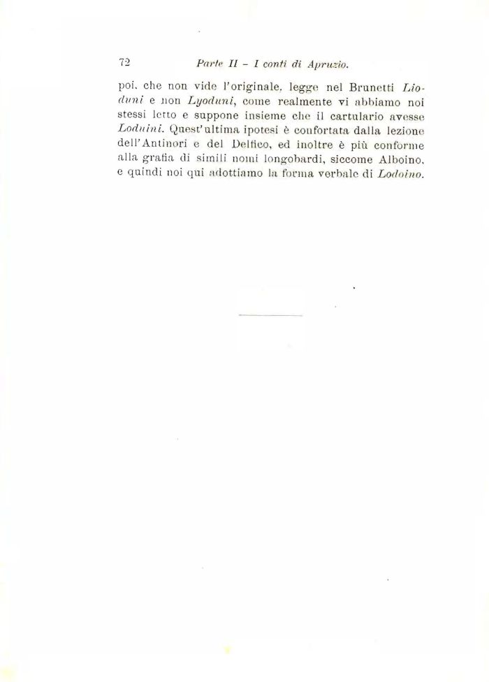 poi. che non vide l'originale, leggìi nel Brunetti Lio-duni e non Lyoduni, come realmente vi abbiamo noi stessi letto e suppone insieme che il cartulario avesse Loda ini. Quest'ultima ipotesi è confortata dalla lezione dell'Antinori e del Delfico, ed inoltre è più conforme alla grafia di simili nomi longobardi, siccome Alboino, e quindi noi qui adottiamo la forma verbale di Lodoino.