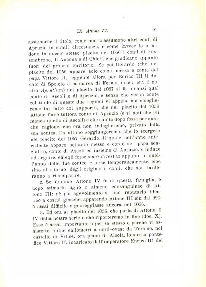 3. Ed ora al placito del 1056, che parla di Attone. il IV della nostra serie e che riporteremo in line (doc. X). Esso è assai importante e per sè stesso e perchè vi assistette, a due chilometri a nord-ovest da Teramo, nel castello di Vitice. ora piano di Aicola, lo stesso pontefice Vittore II. incaricato dall'imperatore Enrico III del