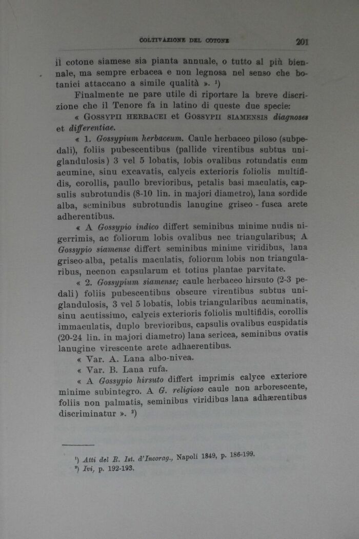 il cotone siamese sia pianta annuale, o tutto al più biennale, ma sempre erbacea e non legnosa nel senso che botanici attaccano a simile qualità ». *)