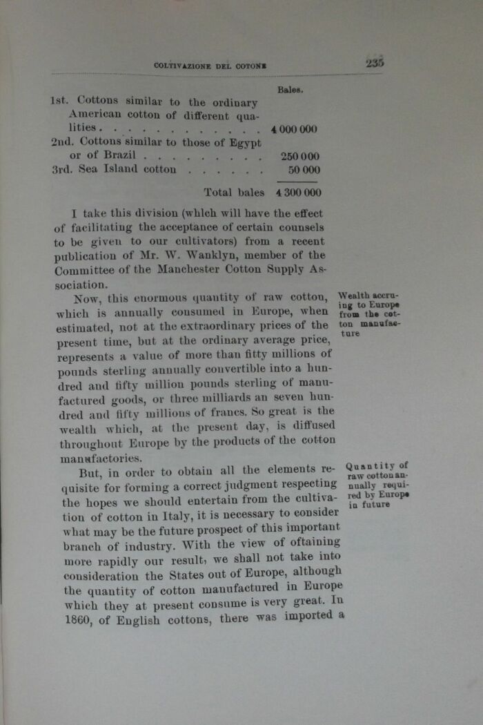 tion of cotton in Italy, it is necessary to consider