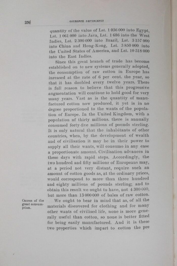 Since this great brandi of trade lias beconie estabi ished on te new systems generally adopted, the consumption of raw cottou in Europe has inreased at the rate of 6 per cent, the year, so that it has doubled every twelve years. There is full reason to believe that this progressive augmentation will continue to hold good for very many years. Vast as is the quantity of manu-factured cotton now produced, it yet is in no degree proportioned to the wants of the popula-tion of Europe. In the United Kiugdom, with a population nf thirty millious. there is annually consumed forty-tìve millions of pounds sterliug. It is only naturai that the inhabitants of other countries, when, by the development of wealth and of civilisation it may be in their power to supply ali their wants, will consumo in any case a proportionate amount. Civilisation advances in these days with rapid steps. Accordingly, the two huudred and fifty millionr of Europeans may, at a period not very distant, require such an amount of cotton goods as, at the ordinary prices, would correspond to more than three hundred and eighty millions of pounds sterling; and to obtain this result we ought to have, not 4 300 000, but more than 13 000 000 of bales of raw cotton. Cause* of the We ought to bear in mind that as, of ali the piion C0DRUm materials discovered for clothing and for many other wants of civilised life, none is more gene-rally useful than cotton, so none is better fitted for beiug easily manufactured. And it is these two properties which impart to cotton the pie