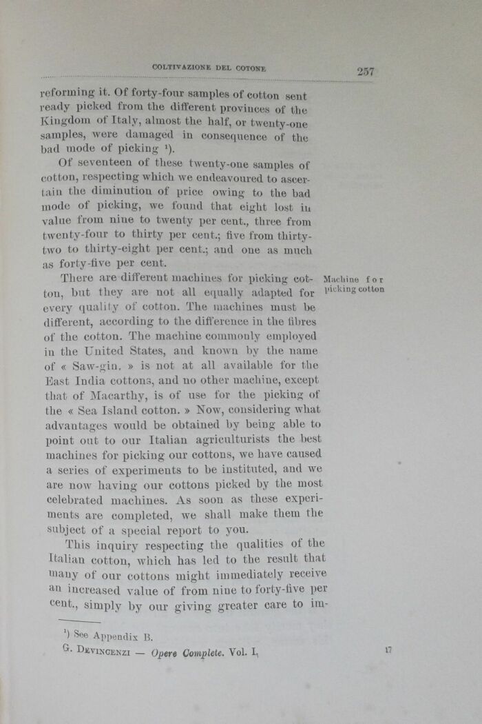 reforming it. Of forty-four samples of cotton sent ready pieked from the different province» of the Kingdom of Italy, almost the half, or tvventy-one samples, were damaged in consequence of the bad mode of picking l).
