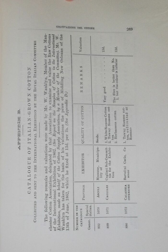 CATALOGUE OF ITALIAN-GROWN COTTON