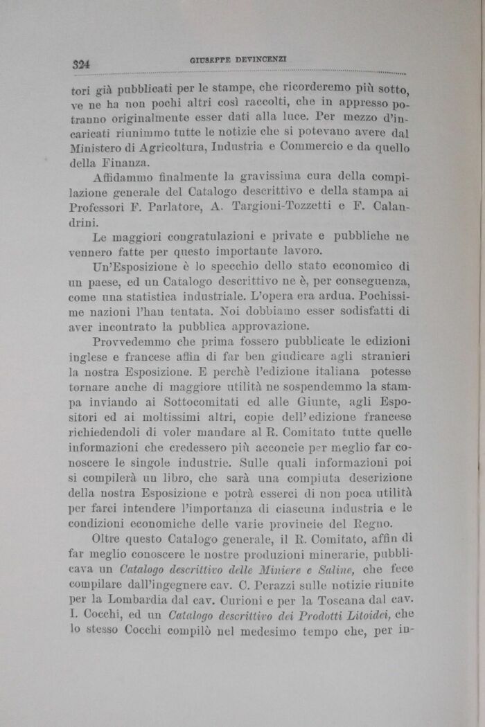 Affidammo finalmente la gravissima cura della compilazione generale del Catalogo descrittivo e della stampa ai Professori F. Parlatore, A. Targioni-Tozzetti e F. Calandrine