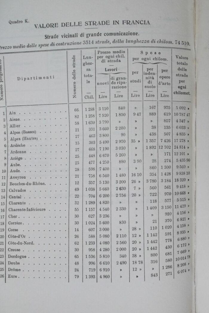 Quadro K. VALQRE DELLE STRADE IN FRANCIA