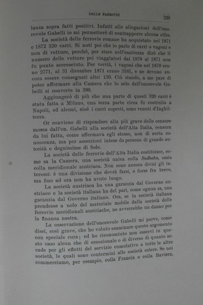 Or conviene di rispondere alla più grave delle censure mossa dall'on. Gabelli alla società dell'Alta Italia, censura da lui fatta, come affermava egli stesso, non di certa conoscenza, ma per asserzioni intese da persone di grande autorità e degnissime di fede.