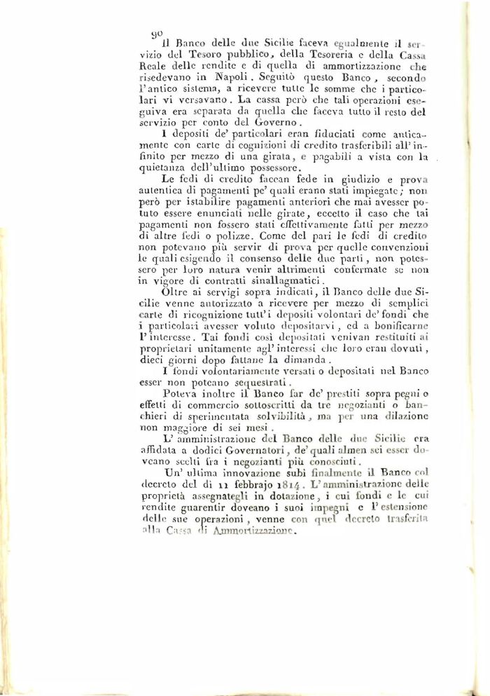 Un' ultima innovazione subi finalmente il Banco col decreto del dì 11 febbrajo 1814. L'amministrazione delle proprietà assegnategli in dotazione, i cui fondi e le cui rendite guarentir doveano i suoi impegni e l'estensione dello sue operazioni , venne con quel decreto trasferita ni hi Ca va 'li Ammortizzazi(ine.