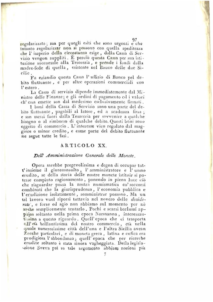 Opera sarebbe pregevolissima e degna di occupar tut-t'insieme il giureconsulto , 1' amministratore e 1' uomo erudito, se della storia delle nostre monete istituir si potesse compiuto ragionamento , ponendo in piena luce ciò che risguardar possa la nostra numismatica co' soccorsi combinali che la giurisprudenza, l'economia pubblica e l'erudizione isolatamente, somministrar possono . Ma un tal lavoro vuol riporsi tuttavia nel novero delle desiderate', e forze ed agio non abbiamo sul momento per riè arche semplicemente tentarlo . Pochi e scarsi barlumi apparii soltanto cella prima epoca Normanna , interessatili ssima a questo riguardo. Quell'epoca che ci trasporta fili' eia brillantissima del nostro commercio , età nella cjuale numerosissime città dell'una e l'altra Sicilia avean Zecche particolari, e di moneta greca , latina e cufica era prodigiosa 1'abbondanza 3 quell'epoca che per ricerche erudite soltanto è stata sinora vagheggiata. Della legisla-•-zione Sveva poi su tale argomento abbjan.i nozioni più