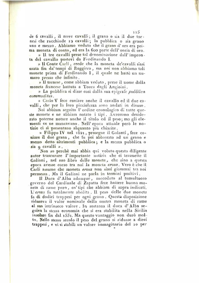» Filippo IV nel 1621 , prosegue il Galanti , fece coniare il due grana , che fu poi abbassato nd un grano e mezzo detto altrimenti pubblica ; e la mezza pubblica o sia g cavalli j> .