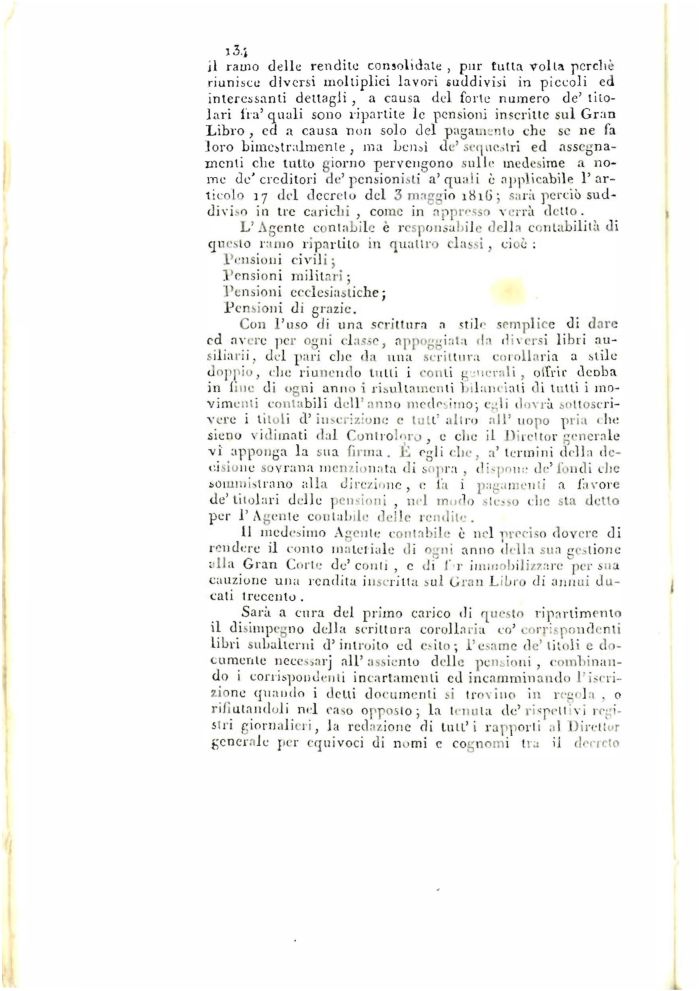 L'Agente contabile è responsabile della contabilità di questo ramo riparlilo in quattro classi, cioè : l'elisioni civili ; Pensioni militari; Pensioni ecclesiastiche; Pensioni di grazie.