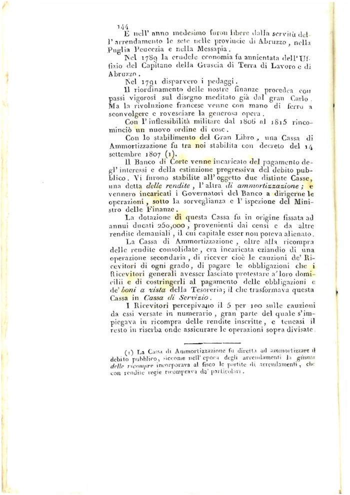 Con lo stabilimento del Gran Libro , una Cassa di Ammortizzazione fu tra noi stabilita con decreto del \\ settembre 1807 (1).