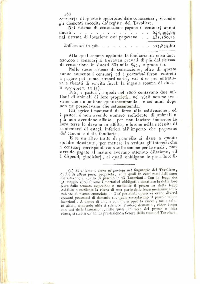 Alla qual somma aggiunta la fondiaria in circa due; 220,000 i ccnsuarj si trovavan gravati di più dal sistema di censuazione in ducati 337 mila 844 , e grana 60.