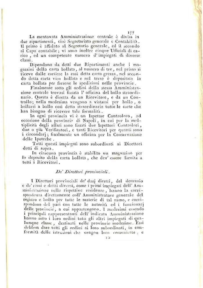 In ogni provincia vi è un Ispcttor Controloro, nd eccezione della provincia di Napoli , in cui per la moltiplichi degli affari sono fissati due Ispettori Controlori , due o più Verificatori, c tanti Ricevitori per quanti sono i circondar] ; finalmente un officina per la Conservazione delle Ipoteche .