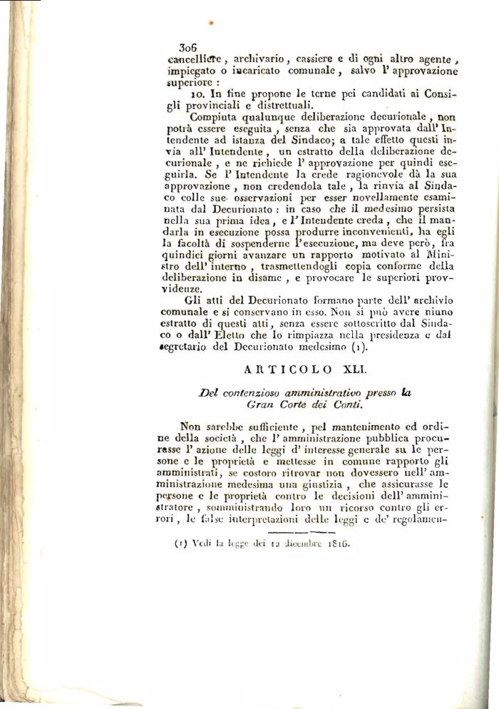 Gli atti del Decurionato l'ormano parte dell' archìvio comunale e si conservano in esso. Non si può avere niuno estratto di questi alti, senza essere sottoscritto dal Sindaco o dall' Eletto che lo rimpiazza nella presidenza e dai •egretario del Decurionato medesimo (i).