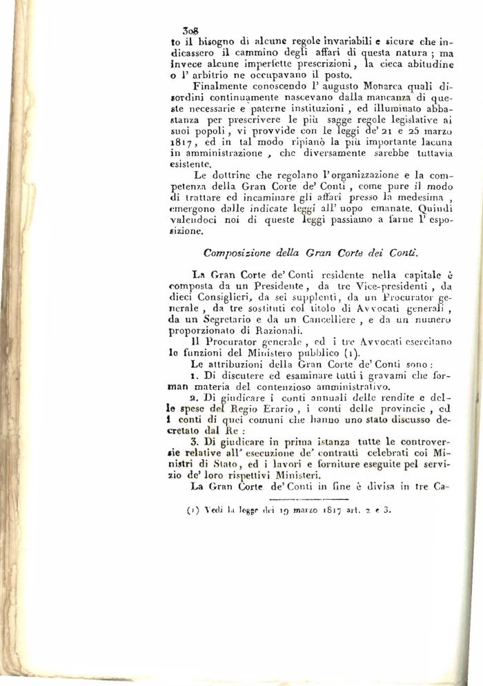 Le dottrine che regolano l'organizzazione e la competenza della Gran Corte de' Conti , come pure il modo di trattare ed incaminare gli affari presso la medesima , emergono dalle indicate leggi all' uopo emanate. Quindi valendoci noi di queste leggi passiamo a farne 1' esposizione.