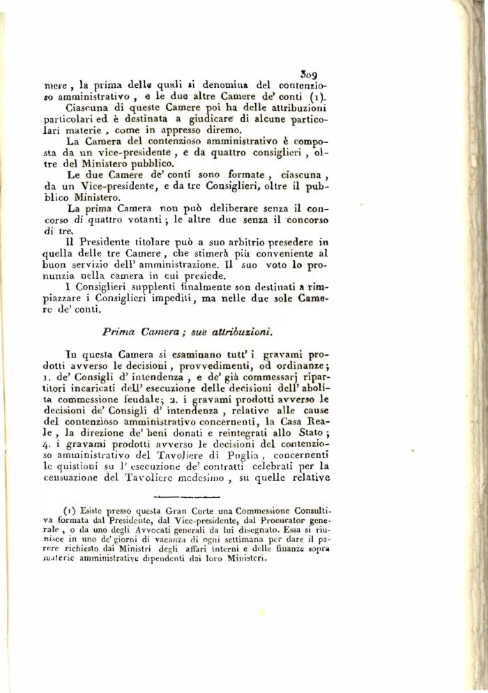 Prima Camera ; sue attribuzioni.