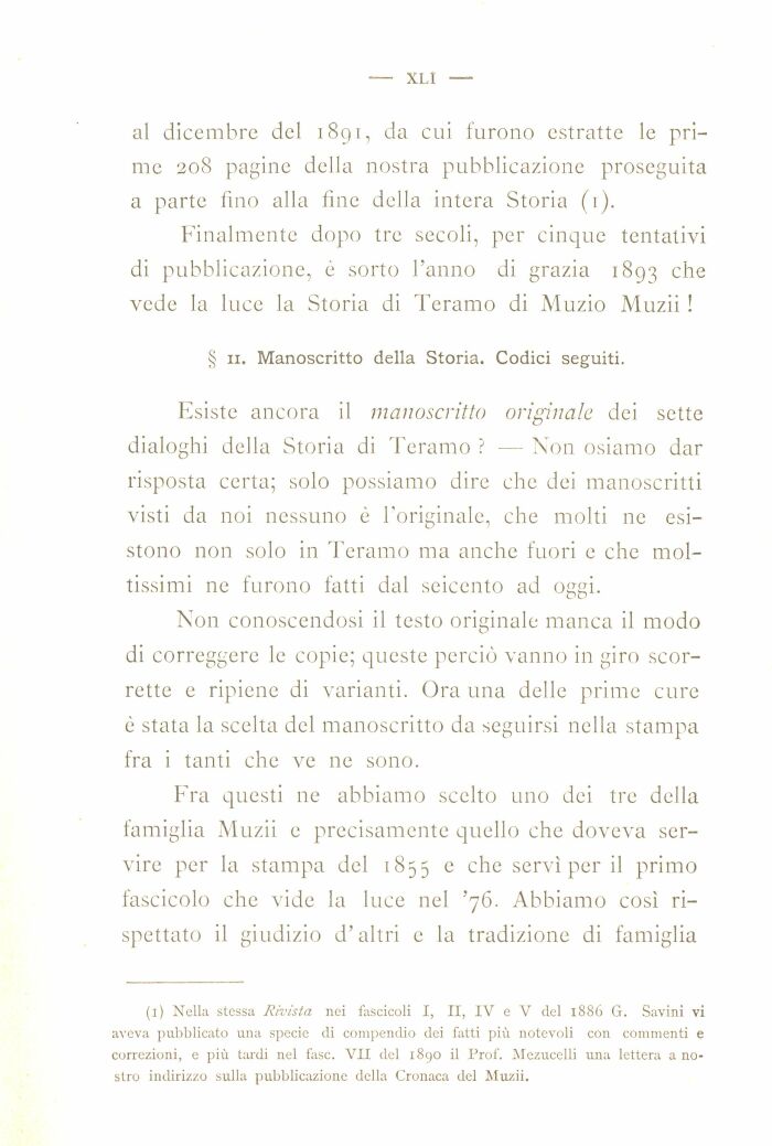 (1) Nella stessa Rivista nei fascicoli I, II, IV e V del 1886 G. Savini vi aveva pubblicato una specie di compendio dei fatti più notevoli con commenti e correzioni, e più tardi nel fase. VII del 1890 il Prof. Mezucelli una lettera a nostro indirizzo sulla pubblicazione della Cronaca del Muzii.