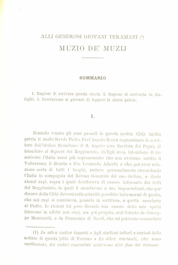 (1) In altro codice leggesi: « Agli studiosi lettori e curiosi delle notizie di questa 'cittą di Teramo » Le a/tre varianti, che sono moltissime, dei codici consultati noteremo alia fine del volume.