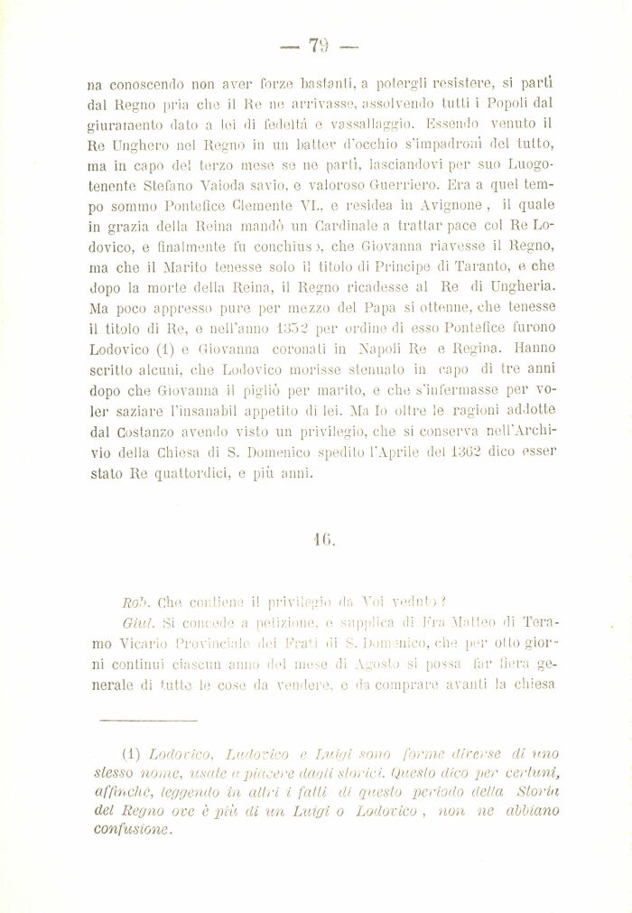 (1) Lodovico, Ludovico e Luigi sono forme diverse di mio slesso nome, usate a piacere dagli storici. Questo dico per certuni, affinchè, leggendo in altri i fatti di questo periodo della Storia del Regno ove è più eli un Luigi o Lodovico , non ne abbiano confusione.