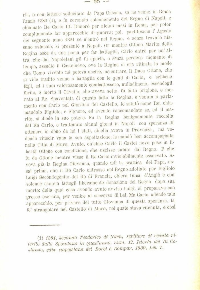 (1) 1381, secondo Teodorico di Niem, scrittore di veduta riferito dallo Spondano in quest'anno, num. 12. Istoria del Di Costanzo, ediz. napoletana del Borei e Bompar, -1839, Lilt. 7.