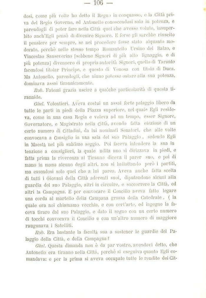 Giul. Questa dimanda non è da par vostro, avendovi detto, che Antonello era tiranno nella Città, perché si eseguiva quanto Egli comandava: e per la prima si aveva occupate tutte le rendite dei Cit-