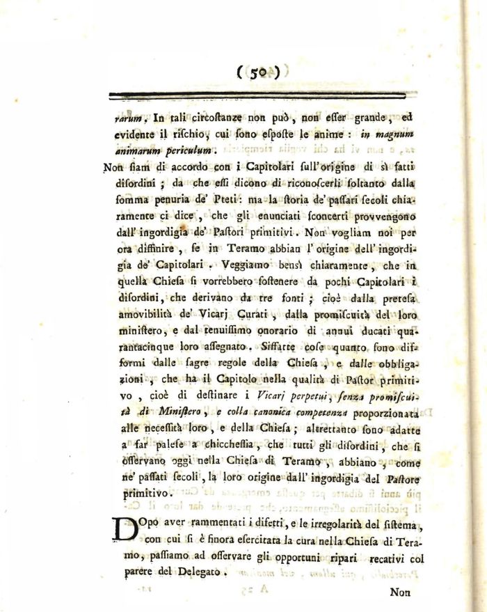 Opo aver rammentati i difetti, e le irregolarità del fiftema , con cui fi è finora efercitata la cura nella Chiefa di Teramo, paflìamo ad offervare gli opportuni ripari recativi col parere del Delegato .
