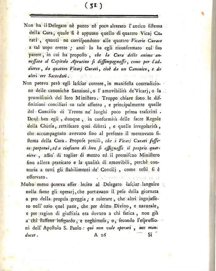 Molto meno poteva effer lecito al Delegato lafqiar languire nella fame gli operar;,che portavano il pefo della giornata a prò della propria greggia ; e tolerare , che altri ingojafle-10 nell'ozio qnel parie, che per dritto Divino, e naturale, e per ragion di giuftizia era dovuto a chi fatica , non già a chi ftaffene infigardo, e neghittofo, o, fecondo l'efpreffio-ni dell' Apoftolo S. Paolo qui non vult operari , nec manv due et. A 2 6