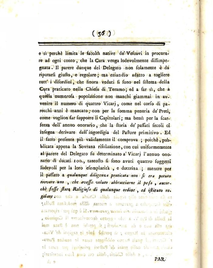 e sì perchè limita le facoltà native de' Vefcovi in procurare ad ogni conto, che la Cura venga lodevolmente diflimpe-gnata. II parere dunque del Delegato non folamente è da riputarfi giudo, e regolare; ma eziandio adatto a togliere tutt' i difordini, che finora veduti fi fono nel fifiema della C\ira praticato nella Chiefa di Teramo; ed a far sì, che a quella numerofa popolazione non manchi giammai in avvenire il numero di quattro Vicarj , come nel corfo di parecchi anni è mancato; non per la fomma penuria de'Preti, come voglion far fupporre li Capitolari; ma bensì perla fcar-fezza dell' annuo onorario, che la ftoria de' pattati fecoli ci infegna derivare dall'ingordigia del Pallore primitivo . Ed il fatto prefente più validamente il comprova ; poiché, pubblicata appena la Sovrana rifoluzione, con cui uniformemente al parere del Delegato fu determinato a'Vicarj l'annuo onorario di ducati ioo., tantofio fi fono avuti quattro foggetti lodevoli per la loro efemplarità , e dottrina ; mentre per il pattato a qualunque diligenza praticata non fi era potuto trovare uno , che aveffe voluto abbracciarne il pe fo , ancor-chi fojfe jìat% Religio fo di qualunque ordine , ed i/iifuto re, golare. ...