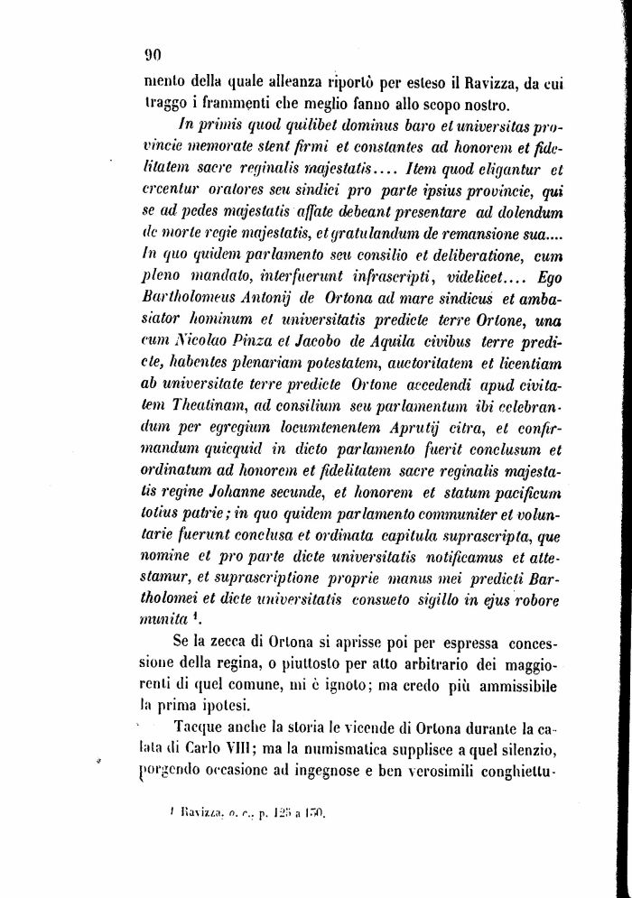 In priiìris quod quilibet dominus baro et universitas pro-vincie memorate stent firmi et constantes ad honorem et fidc-lilatem sacre reginalis majcstatis— Itern quod eligantur et crcentur oralores seu sindici prò parte ipsius prouincie, qui se ad pedes majestatis affate debeant presentare ad dolendum de morte regie majestatis, et(jratulandum de remansione sua.... In quo quidem parlamento seu consilio et deliberatane, cum pieno mandato, interfuerunt infrascripti, vide licei.... Ego tìurtholomeus Antonij de Ortona ad mare sindicus et amba-siator hominum et universitatis predicte terre Ortone, una cum Nicolao Pinza et Jacobo de Aquila civibus terre predi-cle, habcntes plenariam potestatem, auctoritatem et licentiam ab universitate terre pi-edicte Ortone accedendi apud civita-tem Theatinam, ad consilium seu par lamentimi ibi cclebran-dum per egregium locumtenentem Aprutij citra, et confir-mandum quicquid in dicto parlamento fuerit conclusum et ordinatum ad honorem et fidelitatem sacre reginalis majestatis regine Johanne secunde, et honorem et statum pacificum lotius patrie; in quo quidem parlamento communiter et volun-tarie fuerunt conclusa et ordinata capitula suprascripta, que nomine et prò parte diete universitatis notificamus et atte-stamur, et suprascriptione proprie manus mei predicli Bar-tholomei et diete universitatis consueto sigillo in ejus robore munita *.