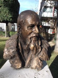 Gennaro Della Monica (Teramo 1836 - Teramo 1917). Dopo aver ricevuto dal padre Pasquale i primi insegnamenti nell'arte del disegno e nell'uso dei colori, si trasferì nel 1852 a Napoli dove studiò all'Accademia di Belle Arti. Si trasferì successivamente a Milano, quindi nel 1863 a Firenze dove rimase diversi anni, e realizzò i dipinti che vi furono esposti ed ammirati. Nel 1867 rientrò definitivamente a Teramo, dove insegnò nell'Istituto Tecnico e nella Scuola comunale di disegno. Nel 1868, in occasione dell'inaugurazione del Teatro Comunale di Teramo si cimentò nel genere della caricatura nel quale rivelò un talento notevole. Negli anni successivi realizzò per le varie Chiese della Diocesi teramana numerosi dipinti. Di questi anni il dipinto più noto è il “Bruto che condanna i figli” realizzato nel 1886 per la nuova sala della Corte d’Assise del Tribunale di Teramo. Insieme alla pittura storica, ritrattistica e soprattutto paesaggistica, praticò anche la nascente arte fotografica. Fu attivo anche nella vita civile della città teramana e fece parte di vari comitati elettorali. Dal 1909 e fino alla morte fu componente della Commissione provinciale per la tutela dei Monumenti. |