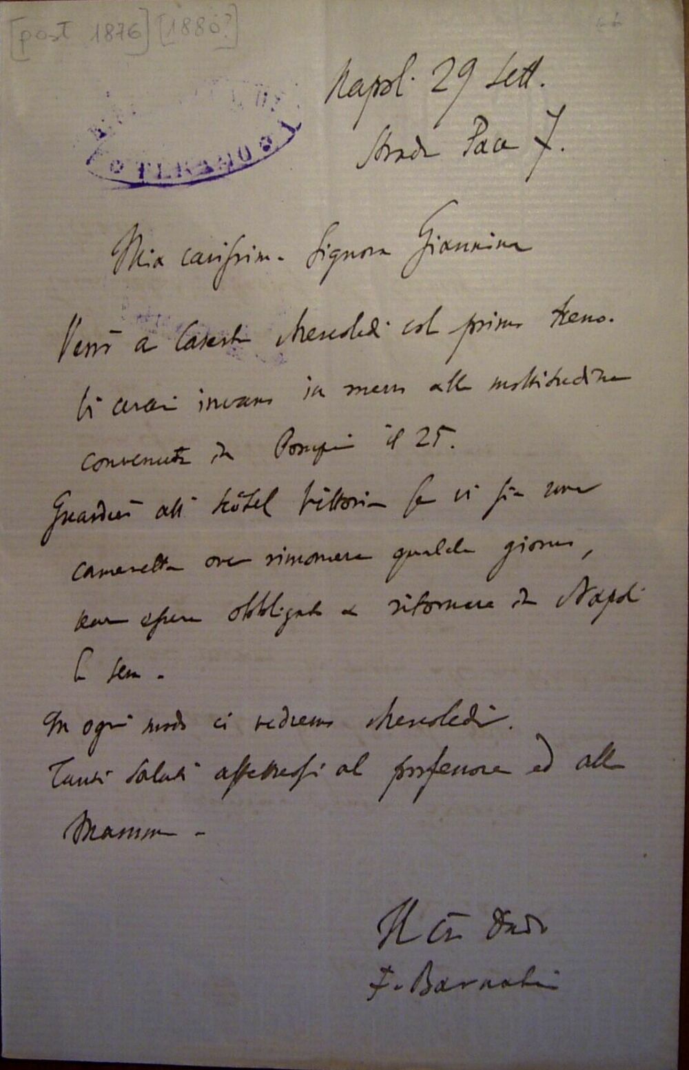 Napoli, 29 settembre s.s. [post 1876]: [1]