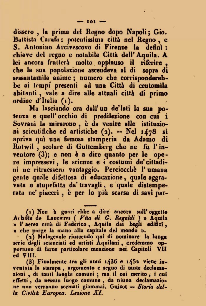 (?) Malagevole riuscendo qui di nominare la lunga serie degli scienziati ed artisti Aquilani , credemmo opportuno di farne particolare menzione nei Capitoli VII ed Vili.