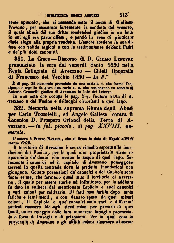 In una nota che occupa le pag. 5-7- l'autore tratta di A. vezzano e dèi Fucino e de'luoghi circostanti a quel lago.