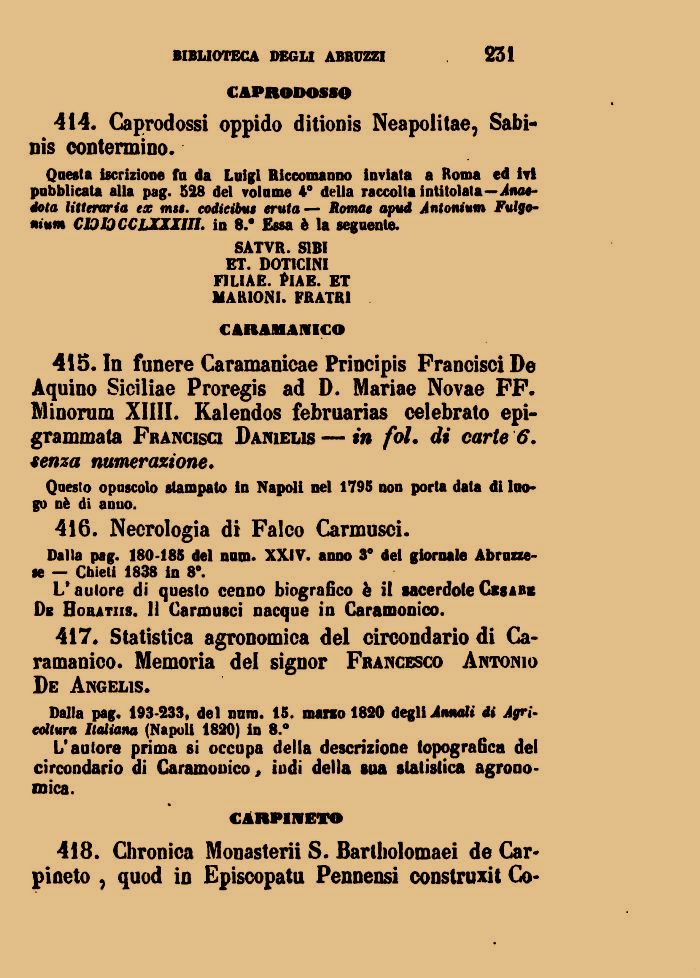 L'autore di questo cenno biografico č il sacerdoteCbsabb Db Hobatiis. 11 Carmusci nacque in Caramonico.