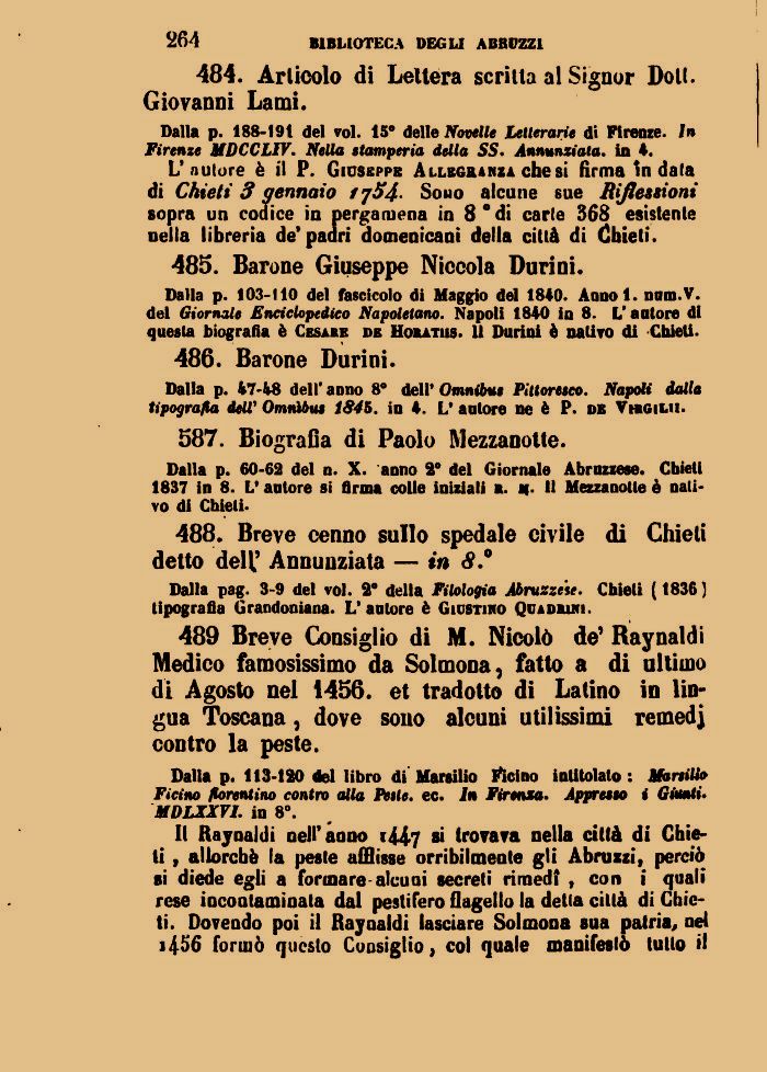 Dalla p. 60-62 del n. X. anno 2° del Giornale Abruzzese. Chieti 1837 in 8. L'autore si firma colle iniziali r. ti Mezzanotte è nativo di Chieti.