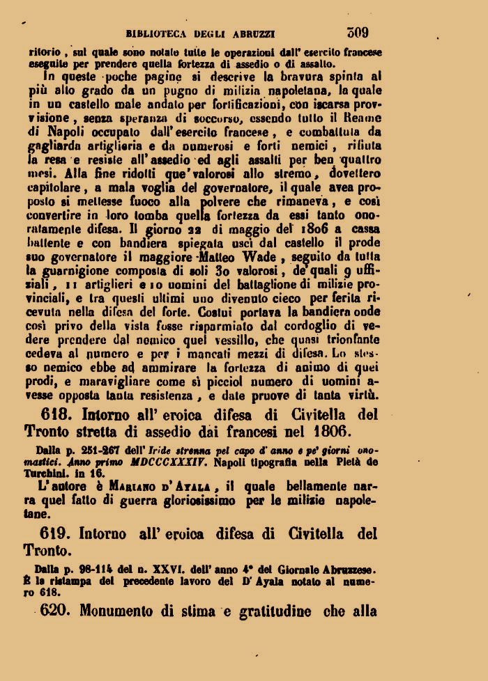 Dalla p. 98-11 k del n. XXVI. dell' anno 4* del Giornale Abruzzese, fi la ristampa del precedente lavoro del D'Ayala notato al numero 618.