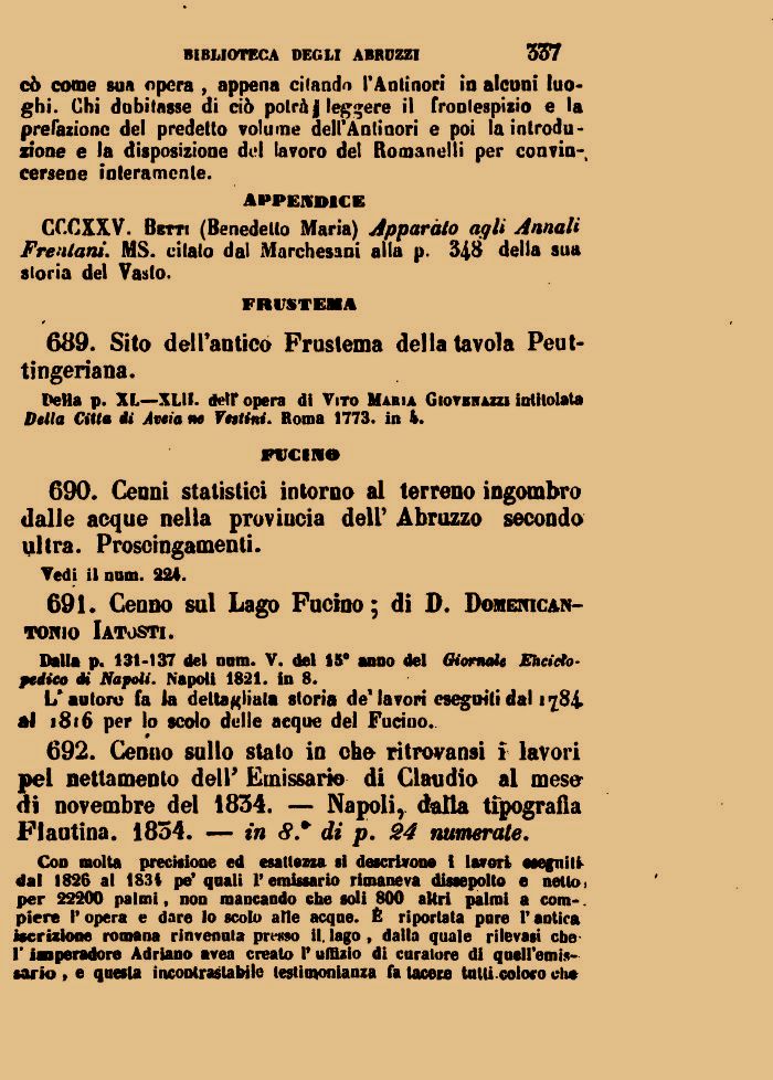 691. Cenno sul Lago Fucino; di D. Doikenican-toivio Iatosti.