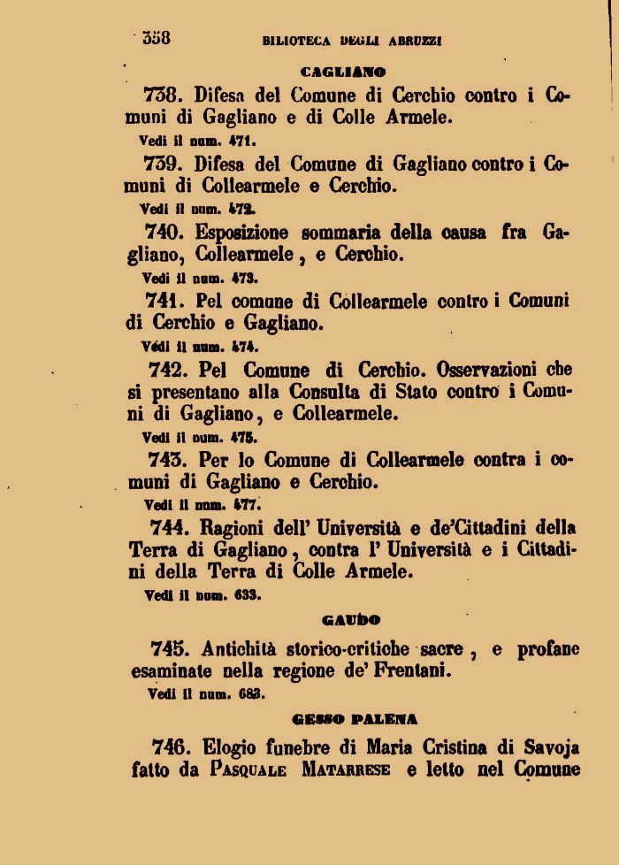 743. Per lo Comune di Collearmele contra i comuni di Gagliano e Cerchio.