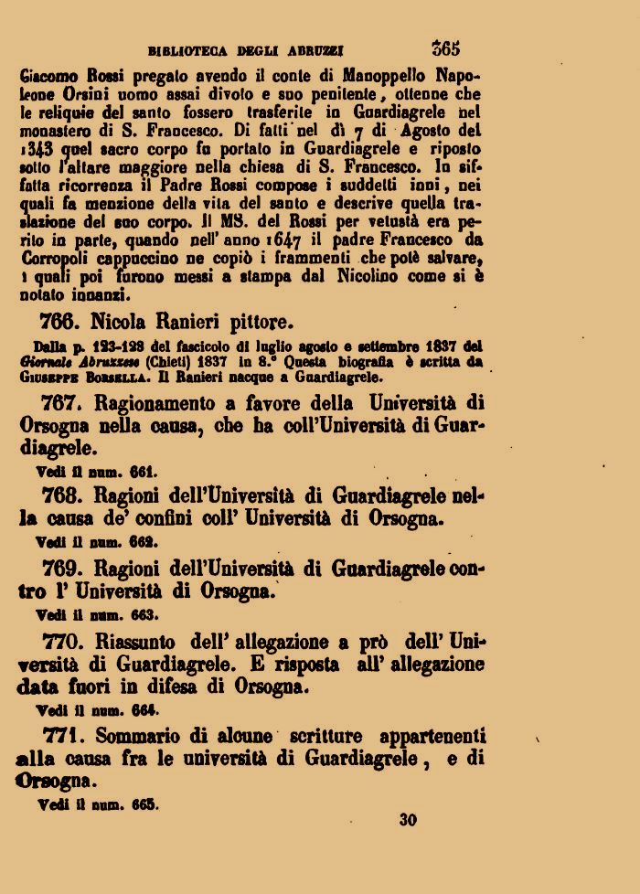770. Riassunto dell' allegazione a prò dell' Università di Guardiagrele. E risposta all' allegazione data fuori in difesa di Orsogna.