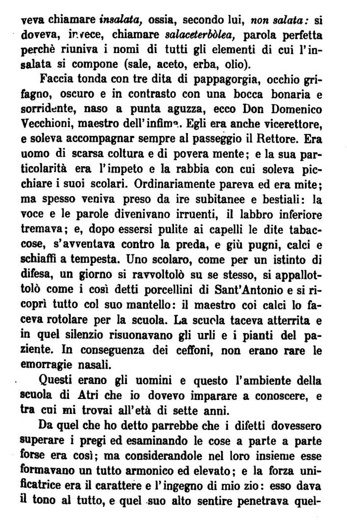 Questi erano gli uomini e questo l'ambiente della scuola di Atri che io dovevo imparare a conoscere, e tra cui mi trovai all'età di sette anni.