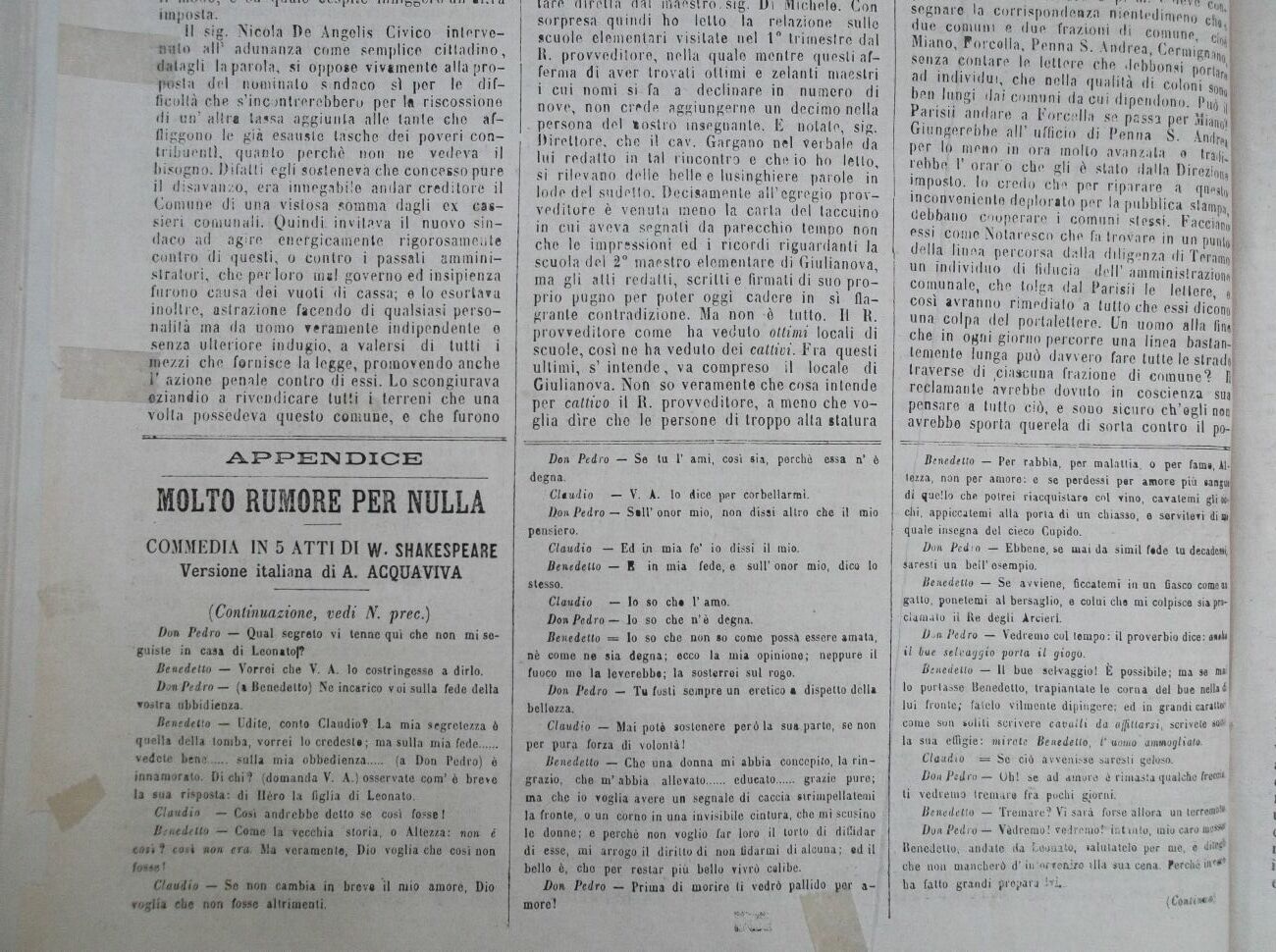 11 novello sindaco di questo Comune sig. Angelofedele Carulli inspirato da lodevole idea pria d1 imporre un nuovo balzello per sopperire al deficit* del bilancio comunale del corrente esercizio, convocava a sè nel giorno 4 corrente tutta la cittadinanza del nostro paese per sentire il parere della maggioranza circa il modo, e su quale cespite infliggerò un'il'.ra I imposta.