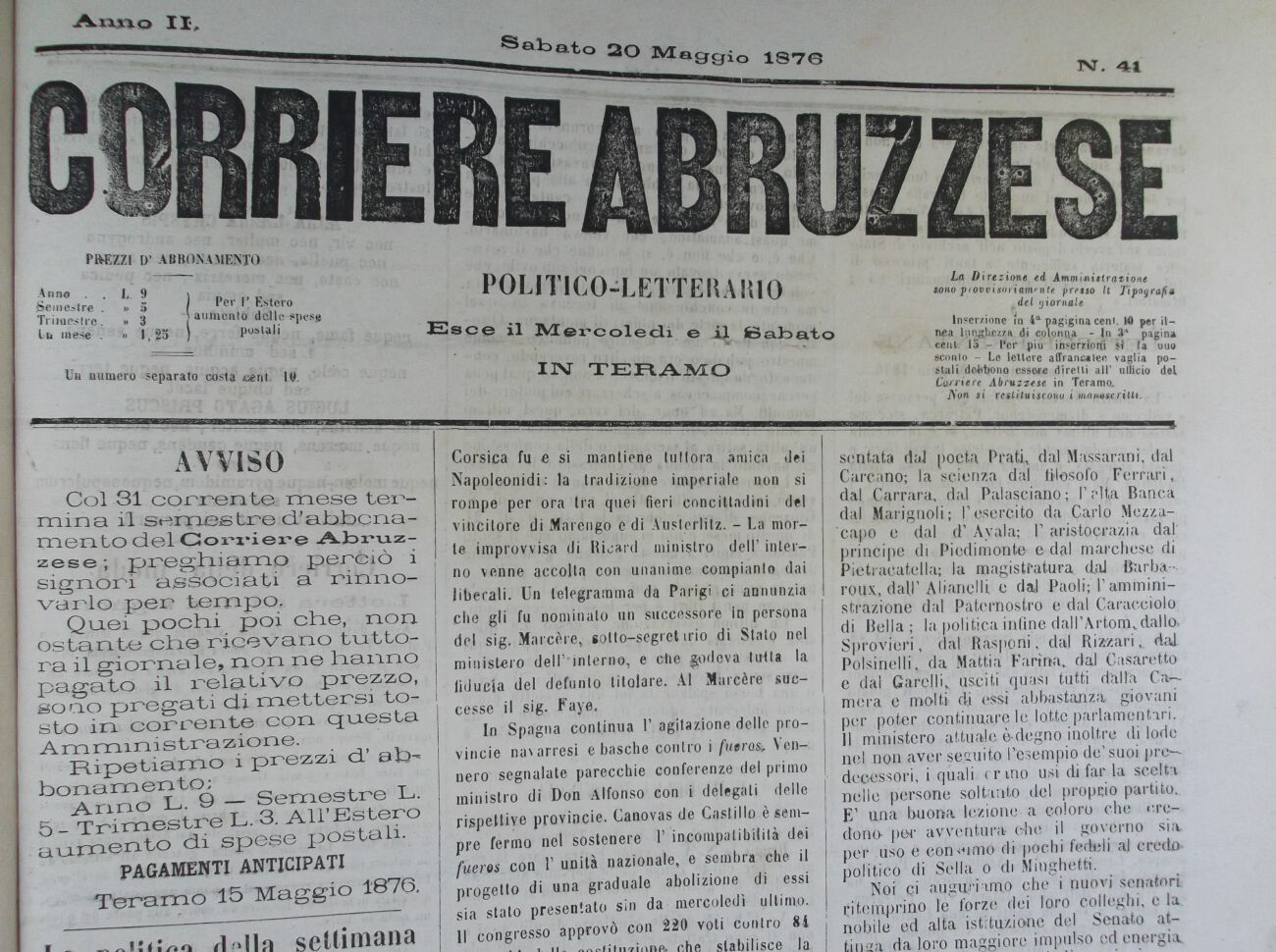 Inserzione in 4a pagigina ceni. W per ii.4 nea luogJiczzR di «olofiQa - In pagina céufe la - Per'più rih5erjtloifi $1 fa uuo sconto - Le lettere affrancale^ vaglia postali deMjono essere diretti all' ufficio del Corriere Abruzzese in Teramo.