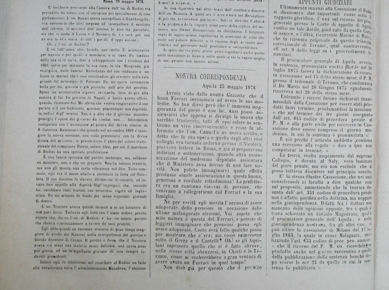 L* incidente provocato alla Camera dall' on. di Rudinì era preveduto da coloro che si occupino più specialmente di cose parlamentari. L' on. Donali aveva interpellato il Guardasigilli; era necessario che alili sorgesse ad interpellare il ministro dell' interno, (Il ministro dell' interno, lo dico tra parentesi, sia che vi sieda il Linza o il Nicotera, fu, è e sarà per sua oa ara la bè e noia di tutt'i pariti d' oppo sizìone.)