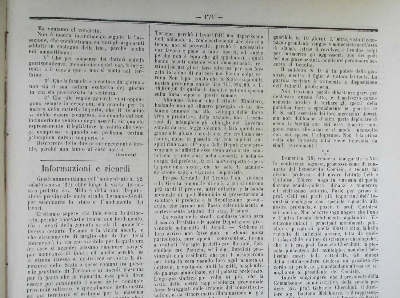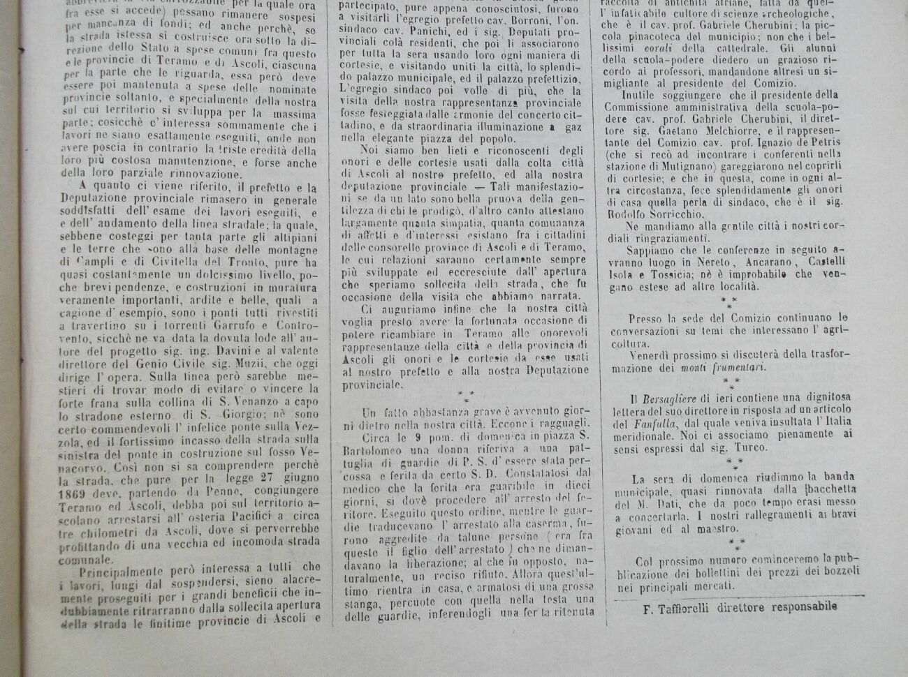 Ci auguriamo infine che la nostra città voglia presto avere' la fortunata occasione di potere ricambiare in Teramo alle onorevoli rappresentanze della città e della provincia di Ascoli gli onori e le cortesie da esse usati al nostro prefetto e alla nostra Deputazione provinciale.