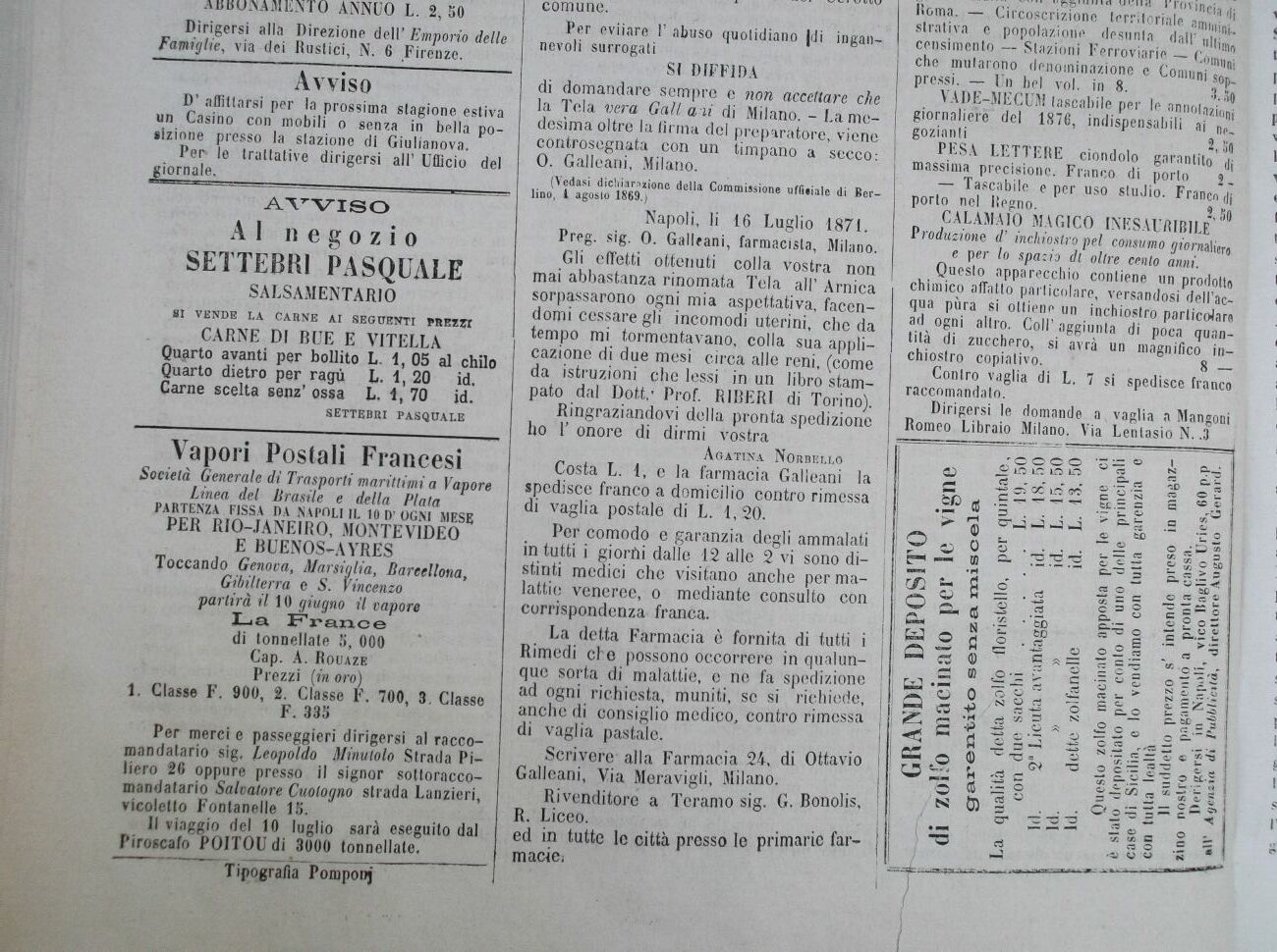 Napoli, li 16 Luglio 1871.