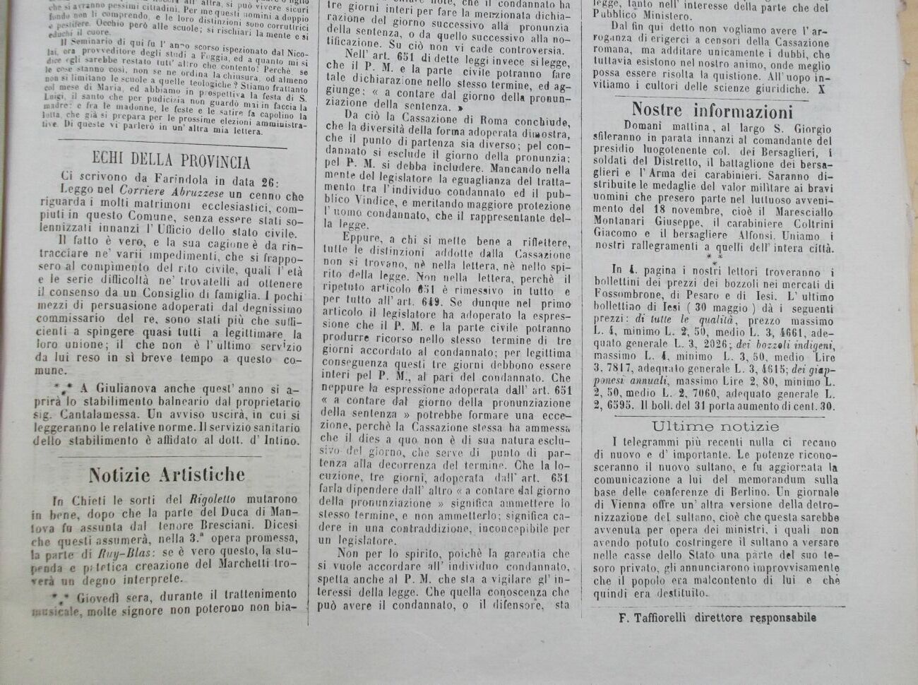 In Aquila i Briganti di Offenbach furono trovati privi d' interesse, ed accolli perciò, dice la Gazzetta, con vivi e manifesti segni di scontento e di disapprovazione.